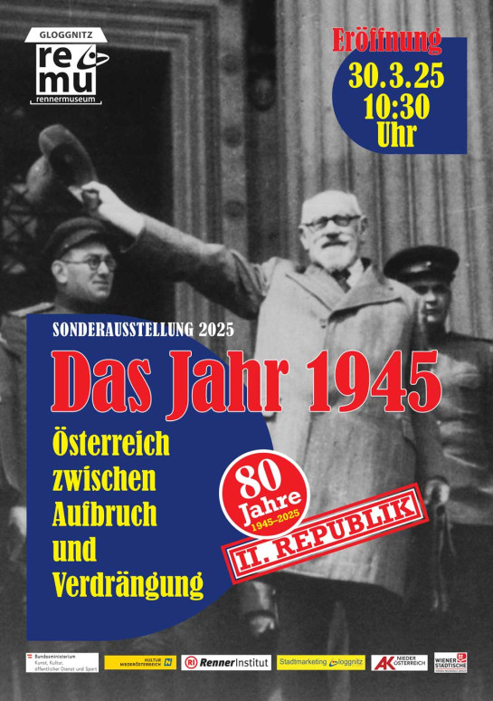 Anlässlich des Jubiläums 80 Jahre Zweite Republik wird im Karl-Renner-Museum in Gloggnitz eine Sonderausstellung gezeigt: Das Jahr 1945 – Österreich zwischen Aufbruch und Verdrängung
