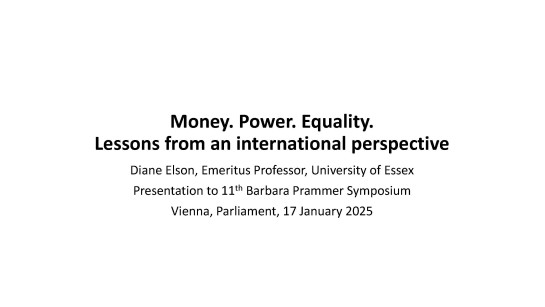 Folien Keynote „Geld. Macht. Gleichstellung. Lehren auf globaler Ebene“, Diane Elson, em. Professorin an der Universität Essex, Großbritannien