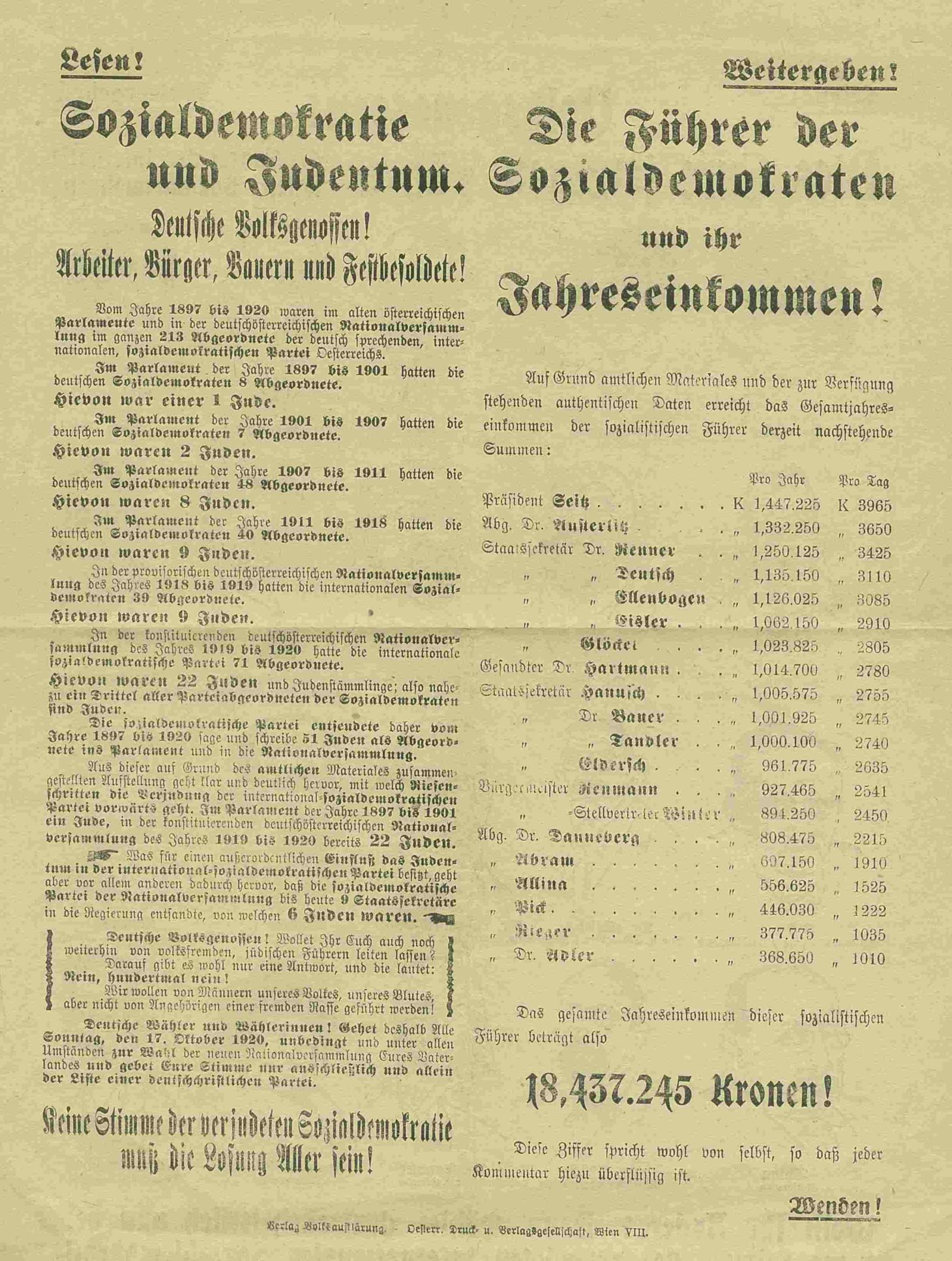 Ja, auch die Sozialdemokratie und die Arbeiter:innenbewegung waren in der Zwischenkriegszeit nicht frei von problematischen Sprachbildern und nicht völlig immun gegen antisemitische Denkmuster. In ihrer antikapitalistischen Agitation griffen beide – wie viele Politiker und Intellektuelle jener Zeit – auf Elemente des vom Antisemitismus geprägten politischen Diskurses zurück, ohne von persönlichem Ressentiment oder antisemitischer Überzeugung getragen zu sein.